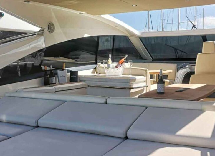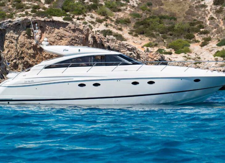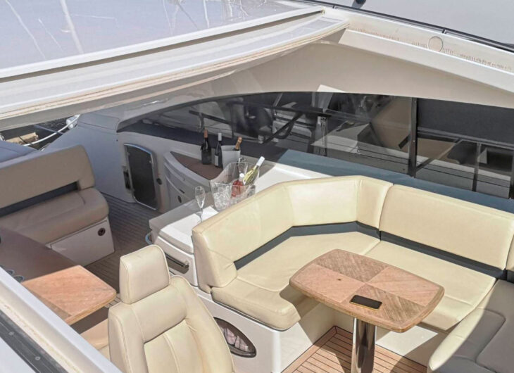 Un alquiler en este Princess V53 «FIVE» es siempre un gran placer para toda la familia. La popa, bien diseñada, ofrece una amplia cubierta de sol y una mesa de comedor. El interior ofrece 3 cabinas y 2 baños, lo que permite un tiempo cómodo y acogedor con la familia y los amigos.