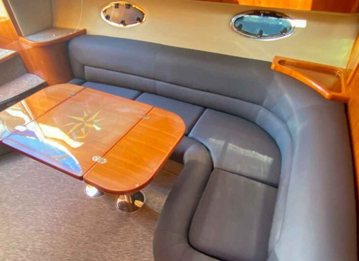 Dispone de espacio en proa de solárium, en la zona de bañera tiene su zona de lounge con